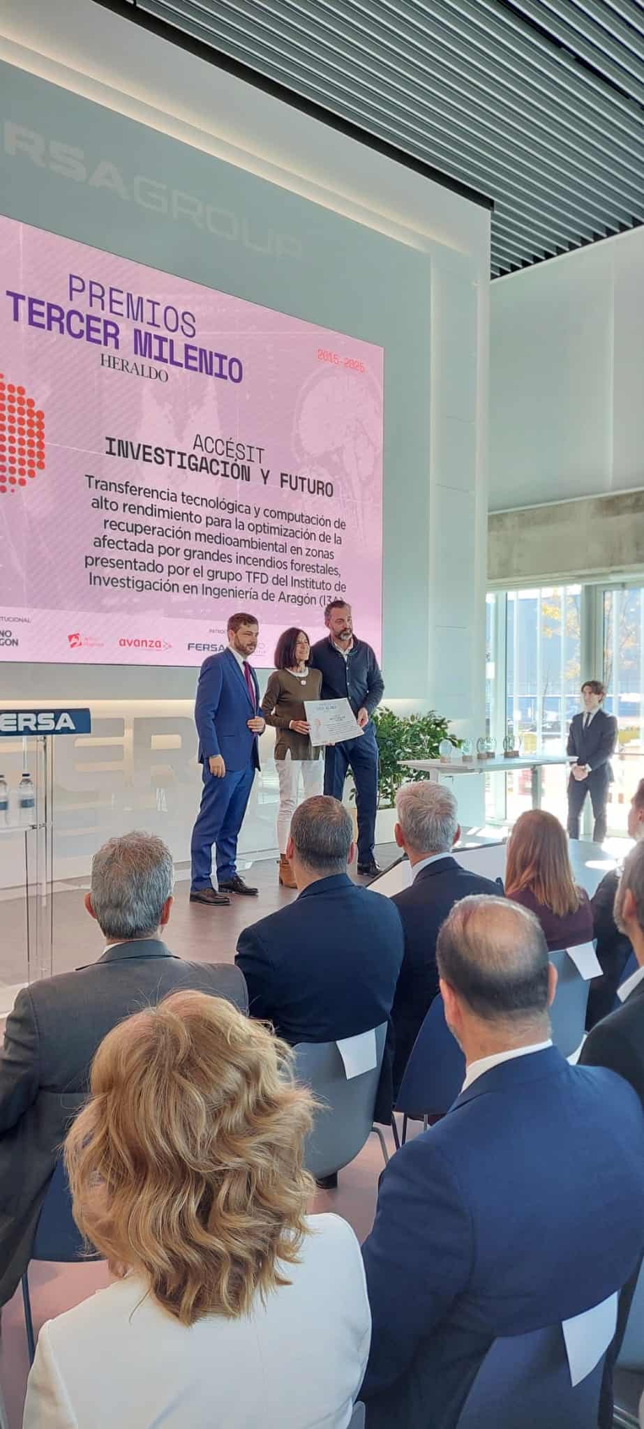 El proyecto europeo EFHERA, coordinado por la Dirección General de Gestión Forestal del Gobierno de Aragón a través de SARGA, ha sido distinguido con un accésit en la categoría “Investigación y Futuro” de los Premios Tercer Milenio, otorgados por Heraldo de Aragón. El reconocimiento fue recogido por Jorge Escario, gerente de SARGA, y Pilar García-Navarro, catedrática de Mecánica de Fluidos de la Universidad de Zaragoza, en un acto celebrado el 26 de noviembre en el Espacio Fersa (Zaragoza).