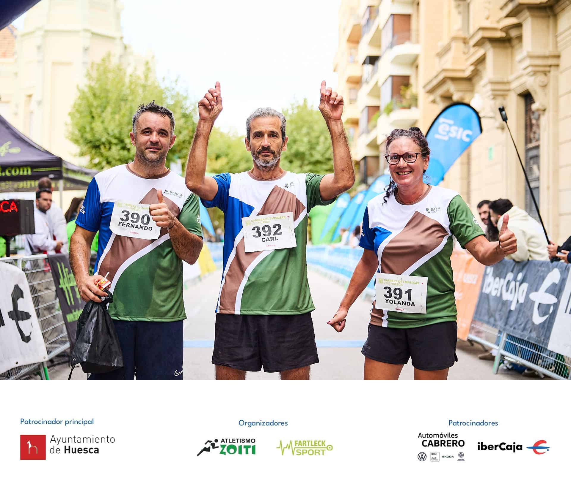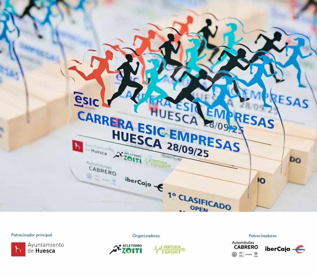 La Carrera de Empresas ESIC volvió a llenar de energía las calles de Huesca este domingo en su segunda edición, con más de 300 participantes de unas 40 entidades diferentes. El recorrido urbano, de 7,8 km, partió y terminó en la Plaza de Navarra, donde equipos, tríos y participantes individuales compartieron deporte, compañerismo y un punto de sana competitividad.